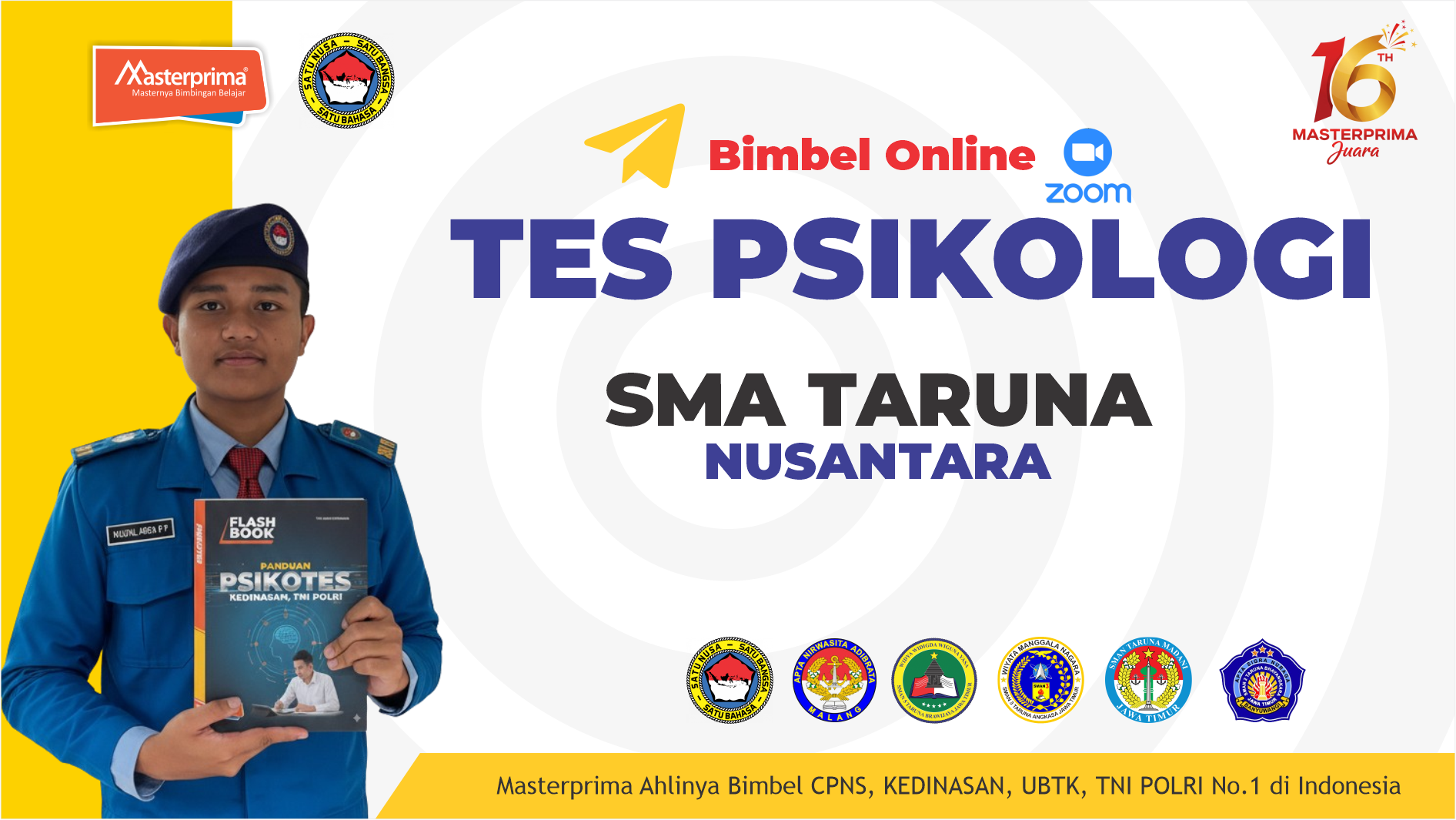 Masterprima membuka bimbel persiapan Tes Psikologi SMA Taruna Nusantara WA 081 655 3755. Persiapan belajar materi, soal, dan strategi tes psikologi (psikotes) masuk SMA Taruna Nusantara bersama psikolog Masterprima. Tes psikologi merupakan salah satu tahapan paling krusial dalam seleksi masuk SMA Taruna Nusantara. Banyak calon siswa yang unggul secara akademik, tetapi
